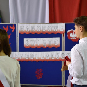 - Ten, kto utracił wolność, może docenić jej wartość - podkreślała w swoim przemówieniu Pani Agnieszka Dorobiała, dyrektor szkoły. Jednocześnie podziękowała uczniom i nauczycielom za ich zaangażowanie w wiele wydarzeń uapmiętniających naszych przodków i ich dokonania.