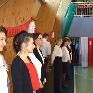 Wystąpieniu przysłuchiwali się przedstawiciele m.in. samorządu: radni, sołtysi, dyrektorzy instytucji gminnych, a także grono pedagogiczne szkoły i rodzice uczniów. Wśród zaproszonych gości były także kombatantki z Gminy Dobroszyce Pani Krystyna Lewndowska i Genowefa Suwala, dla których tak podniosłe wykonanie przez młodzież pieśni patriotycznych było szczególnie wzruszające.